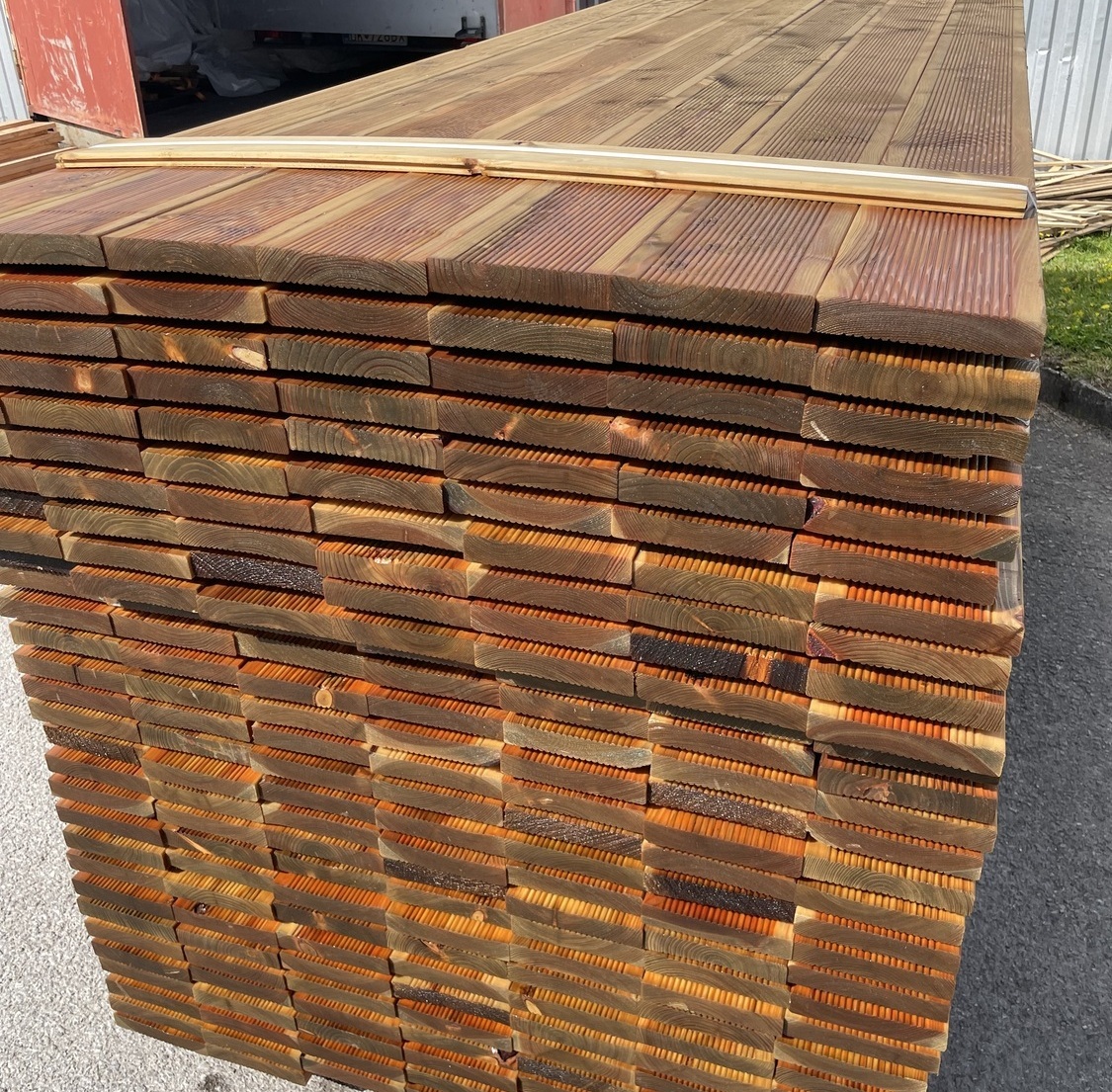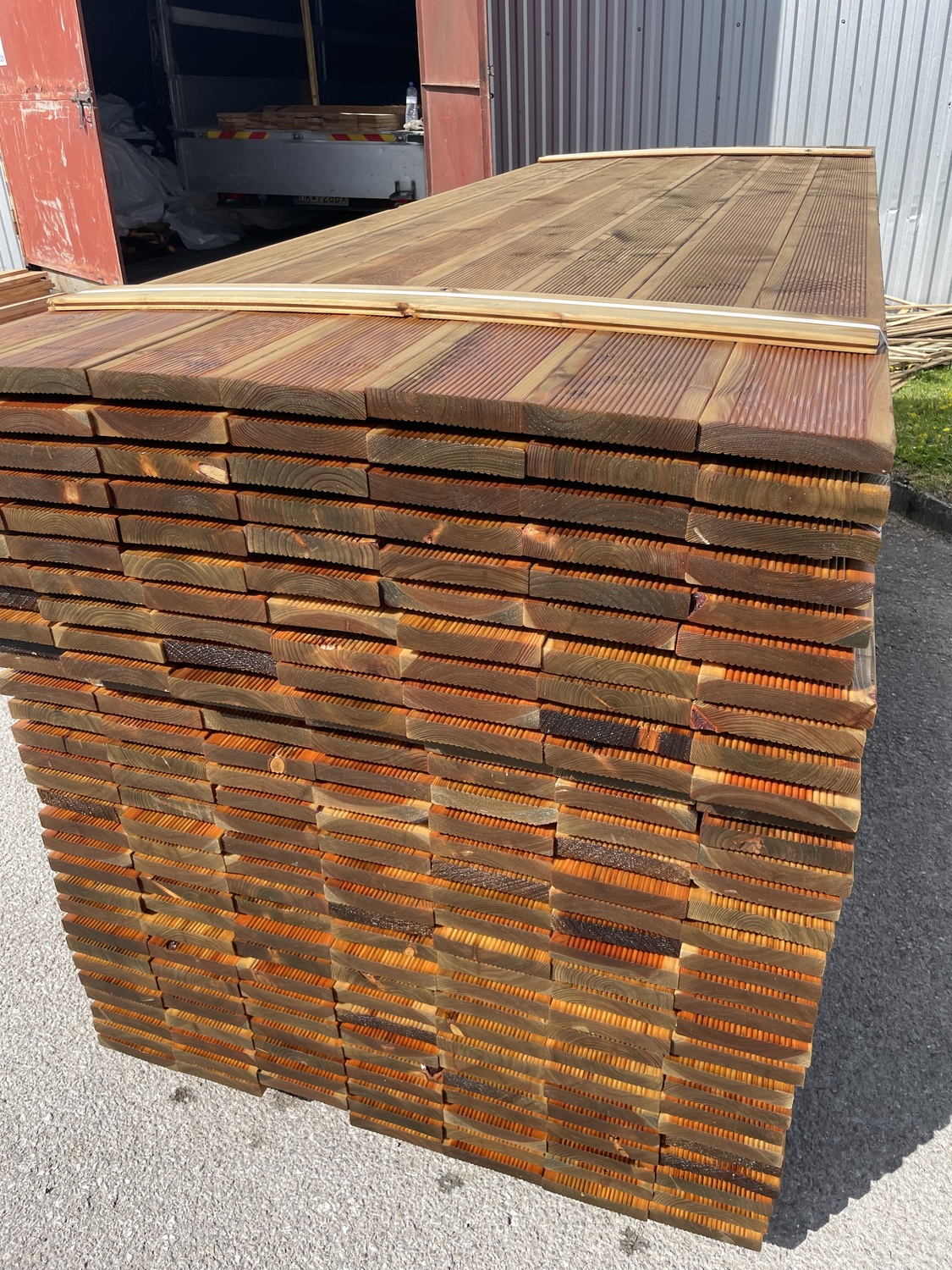 | ČERVENÝ SMREK OBOJSTRANNE HLADKÝ/DRÁŽKOVANÝ | 27 x 148 mm | 27,5 EUR/m2 | Dĺžky 3,4,5 m |